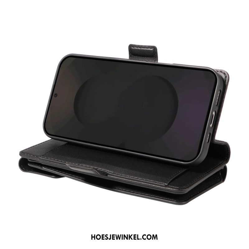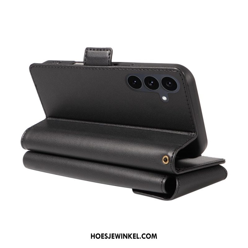 Leren Hoesje Voor Samsung Galaxy S25 Fe Leren Portemonnee Met Ritssluiting En Riempjes