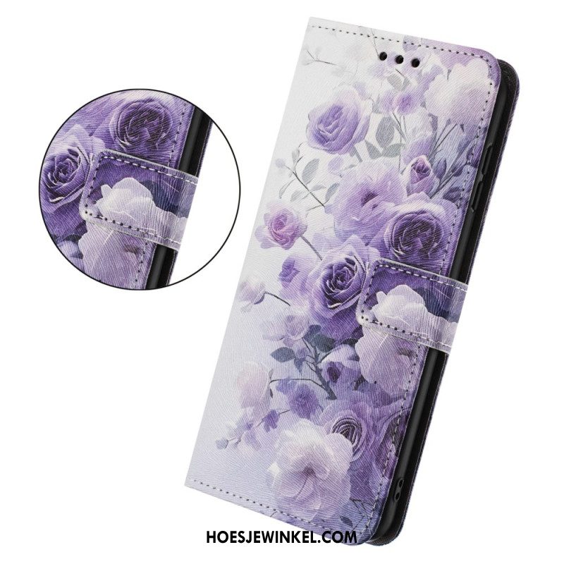 Leren Hoesje Samsung Galaxy S26 Paarse Rozen