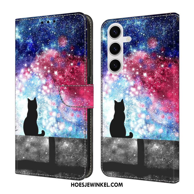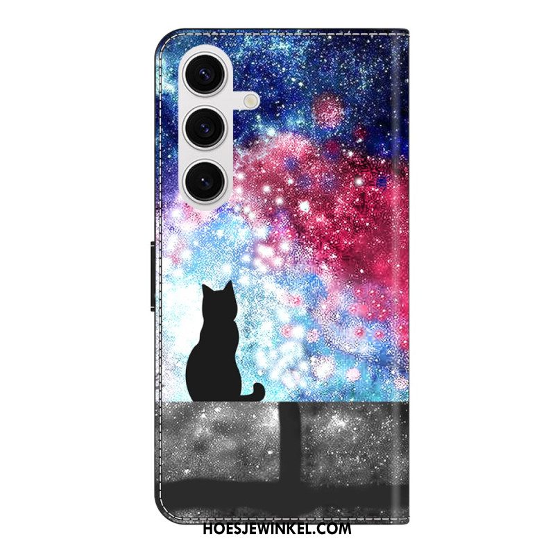 Leren Hoesje Samsung Galaxy S26 Plus Kat In Een Sterrenhemel Bescherming Hoesje