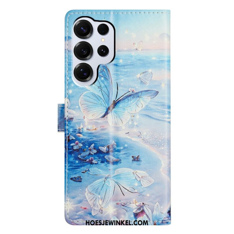 Leren Hoesje Samsung Galaxy S26 Ultra Bloemen Met Vlinders
