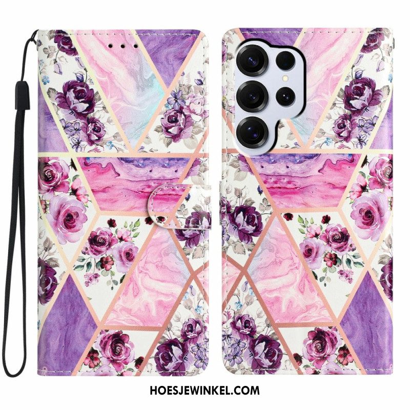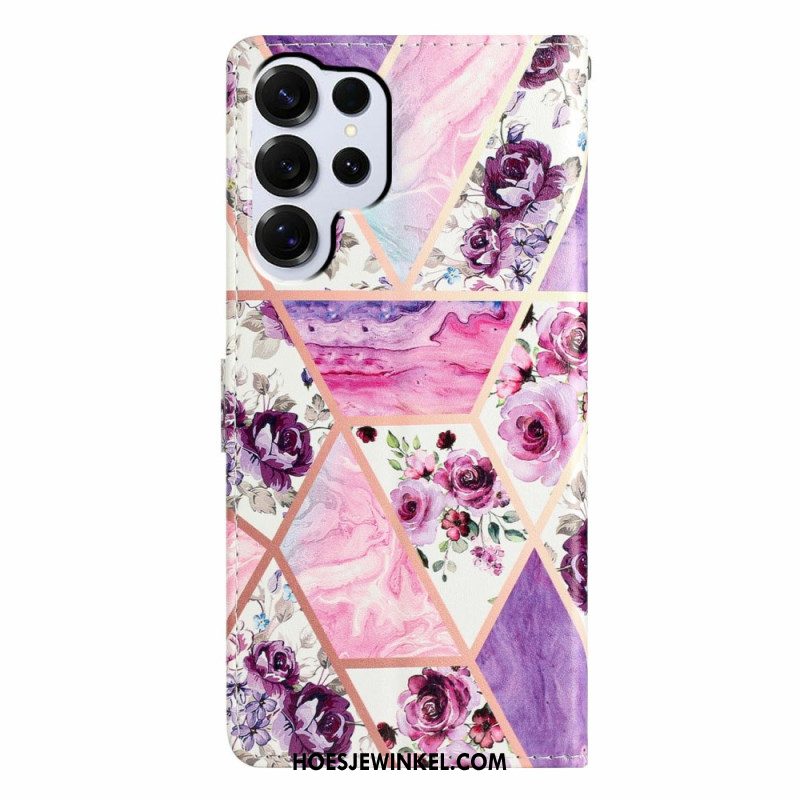 Leren Hoesje Samsung Galaxy S26 Ultra Paars Patroon Bescherming Hoesje
