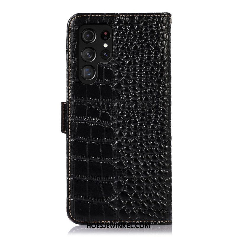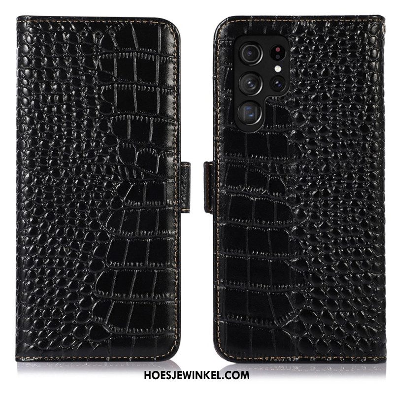 Leren Hoesje Samsung Galaxy S26 Ultra Rfid-blokkering In Krokodillenstijl