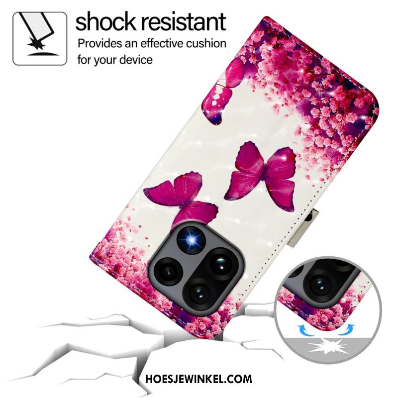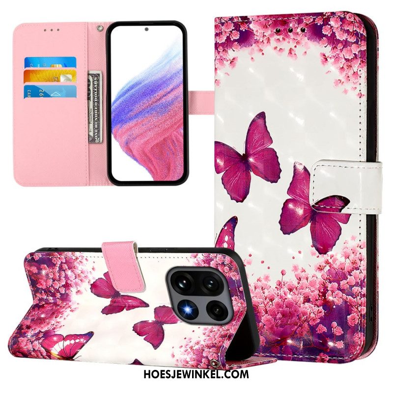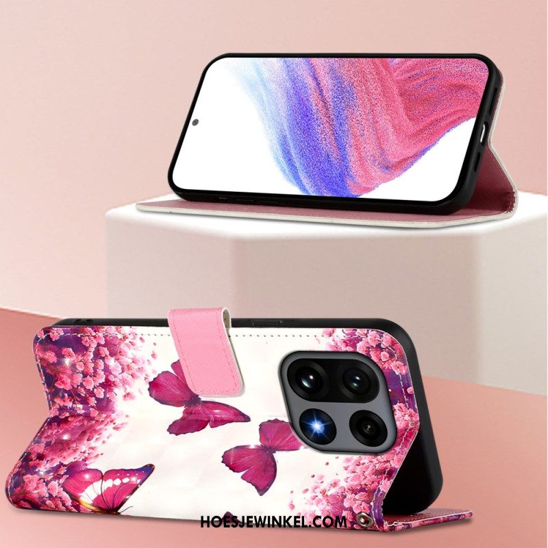 Flip Case Leren Oneplus 15 Bloemen En Vlinders