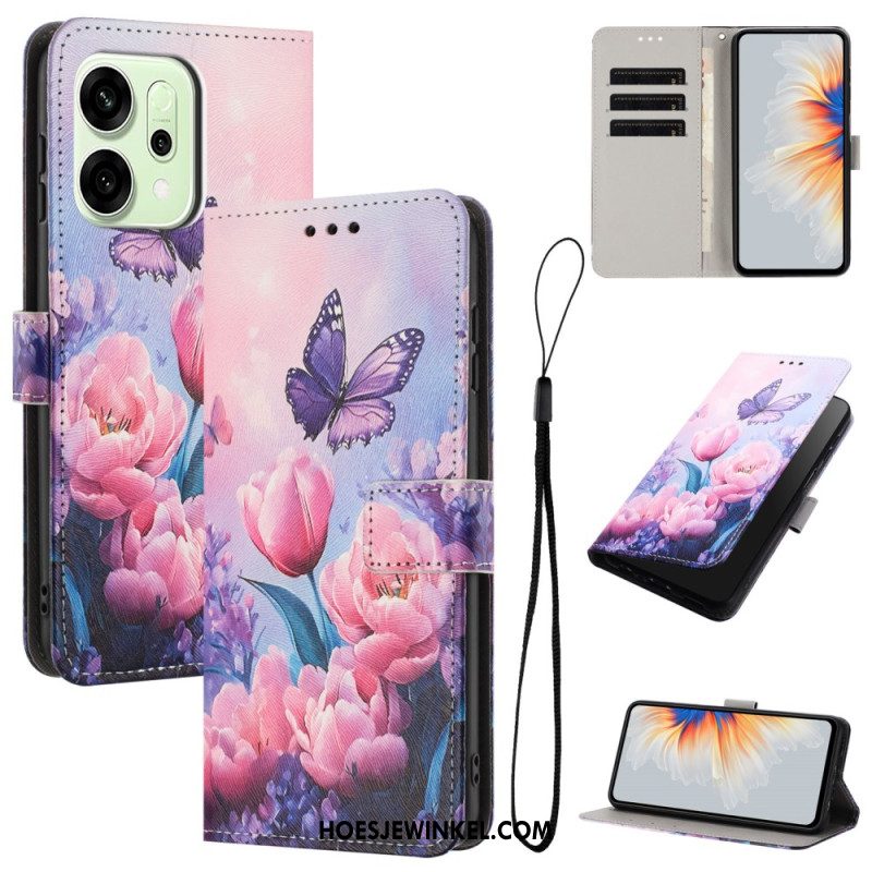 Leren Hoesje Voor Oppo Reno 14f 5g Vlinder Afdrukken