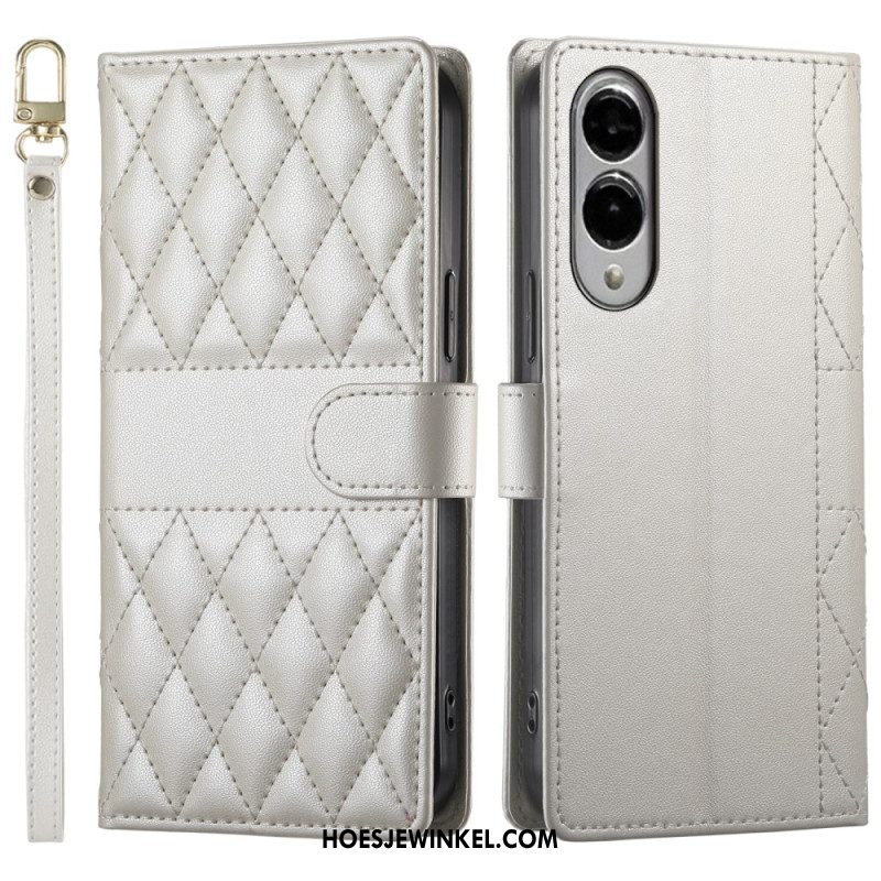 Leren Hoesje Voor Samsung Galaxy S25 5g Edge Gewatteerd Met Bandje En Schouderband