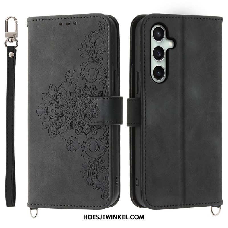 Leren Hoesje Voor Samsung Galaxy S25 Fe Kantprint Met Bandje En Schouderband