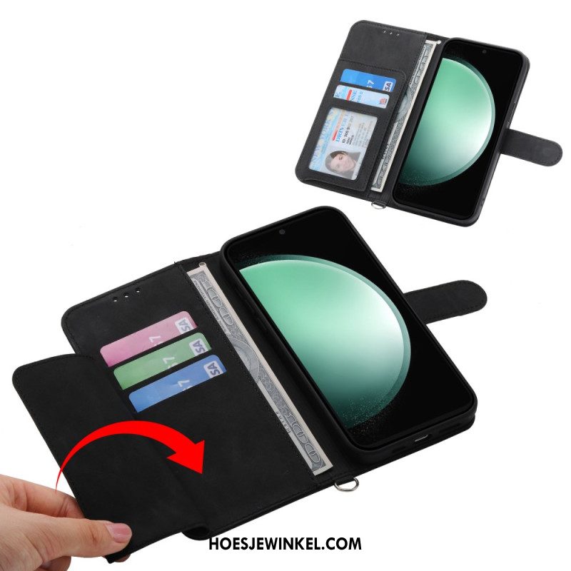 Leren Hoesje Voor Samsung Galaxy S25 Fe Leren Portemonnee Met Ritssluiting En Riempjes