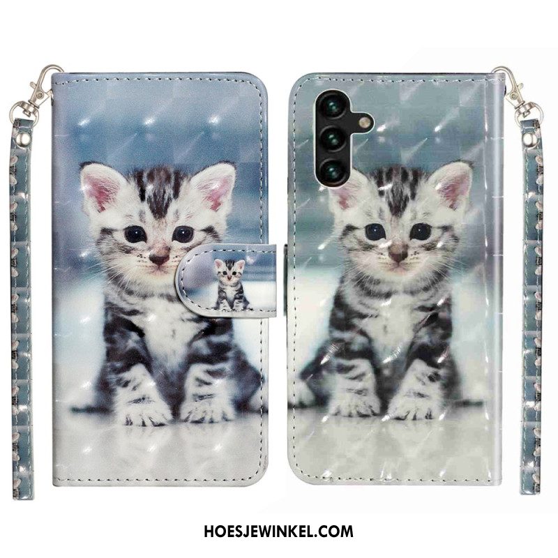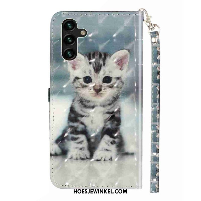 Flip Case Leren Samsung Galaxy S25 Fe Luipaardkop Met Koord