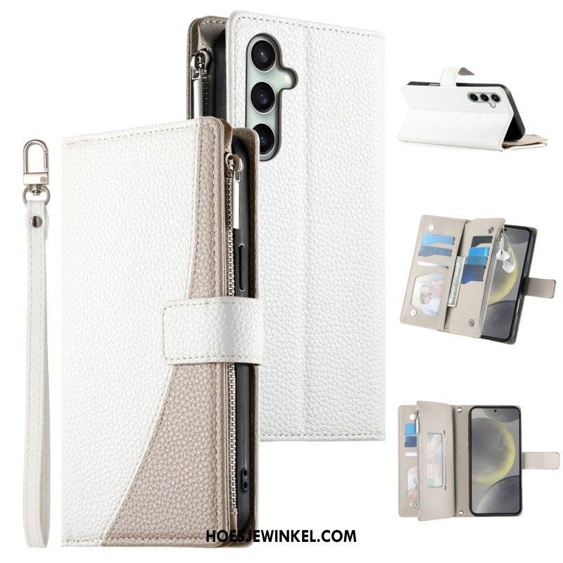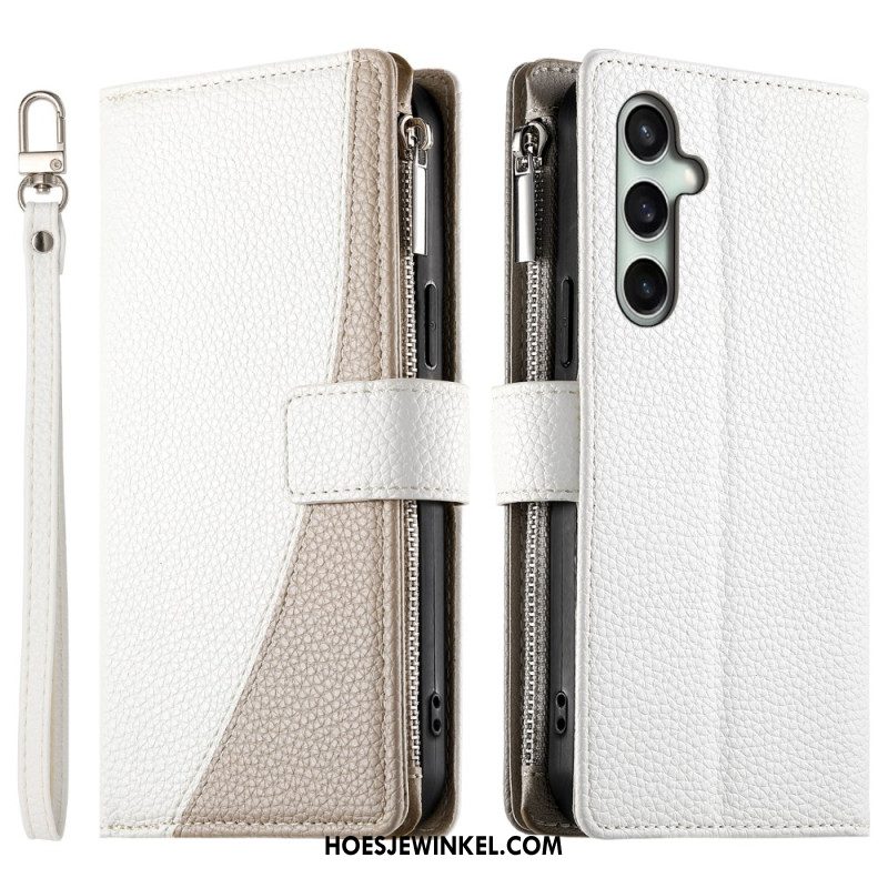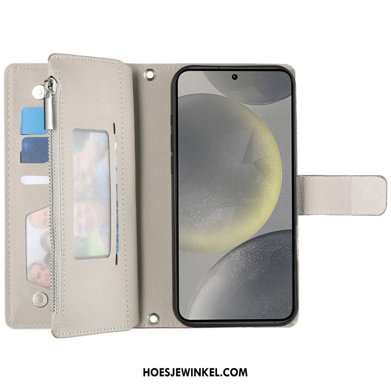 Leren Hoesje Voor Samsung Galaxy S25 Fe Leren Portemonnee Met Ritssluiting En Riempjes