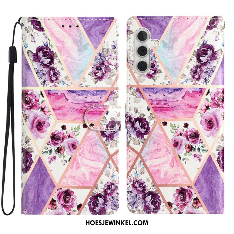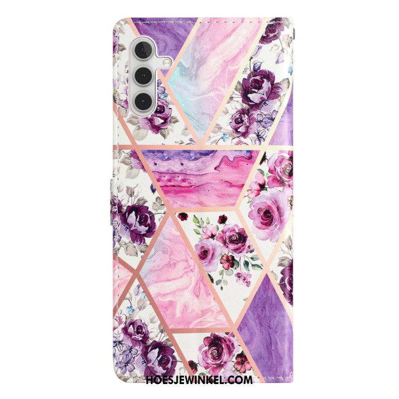 Leren Hoesje Voor Samsung Galaxy S25 Fe Marmer Met Bloemen