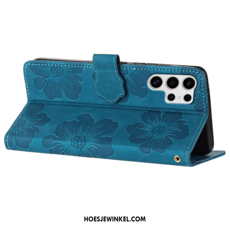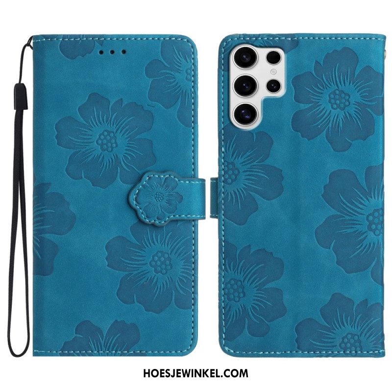 Leren Hoesje Samsung Galaxy S25 Ultra 5g Bloemenprint Met Bandje