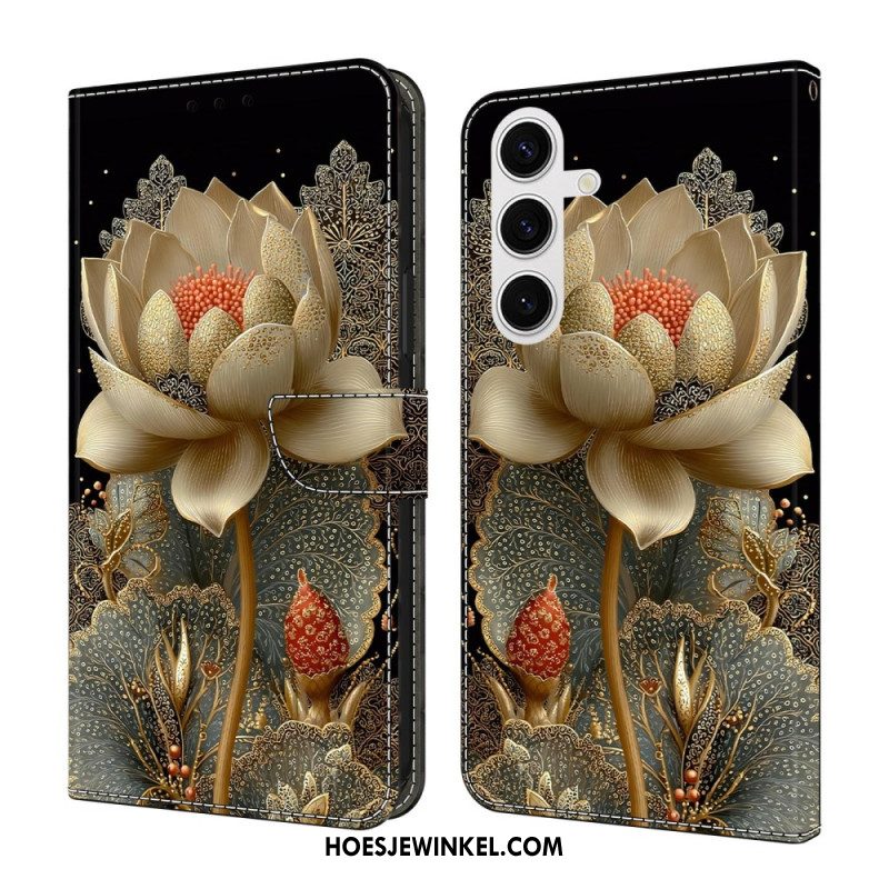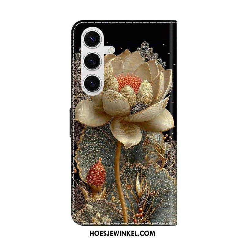 Leren Hoesje Voor Samsung Galaxy S26 Gouden Lotus