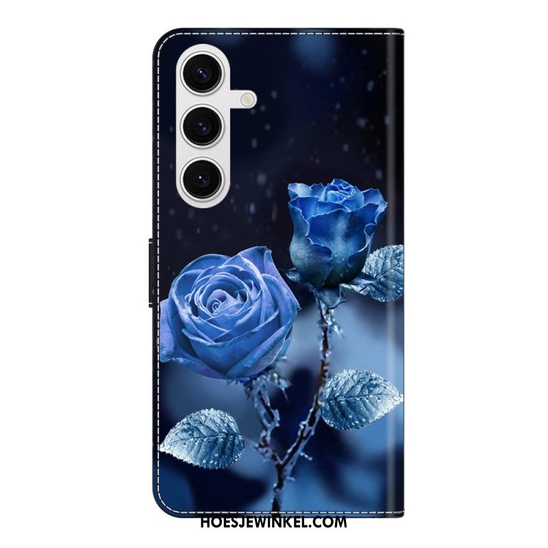 Leren Hoesje Voor Samsung Galaxy S26 Plus Blauwe Rozen