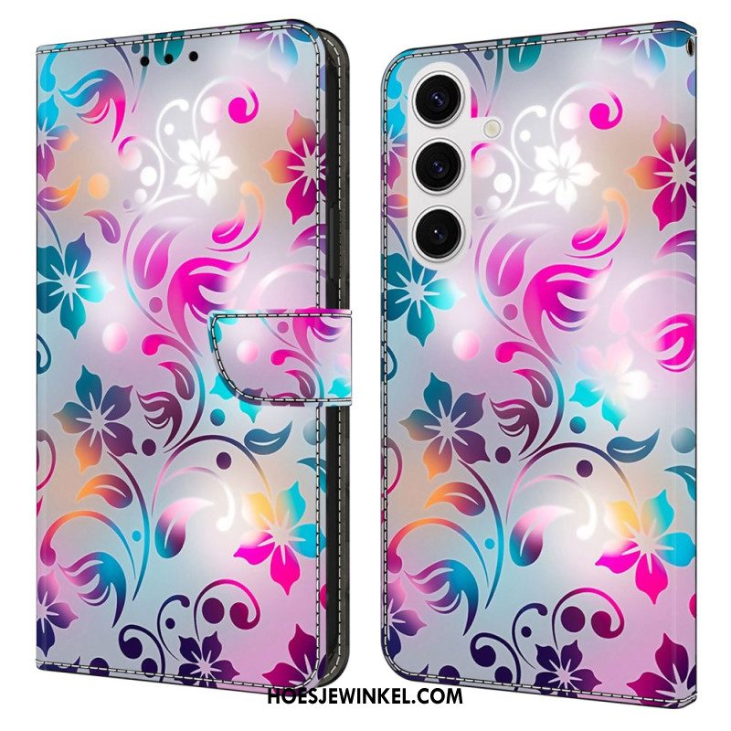 Leren Hoesje Voor Samsung Galaxy S26 Plus Handgemaakte Bloemen
