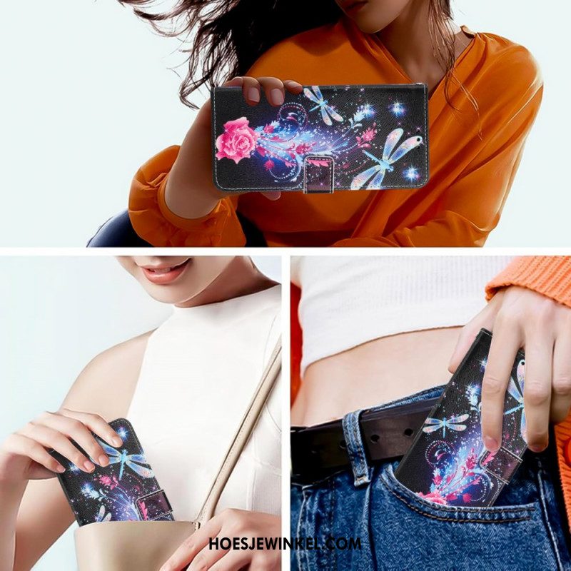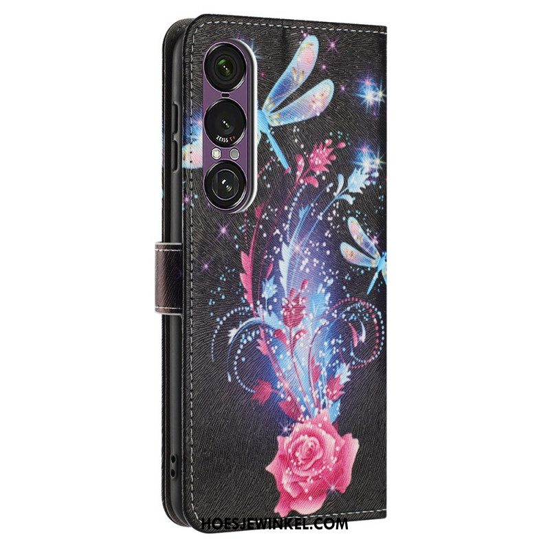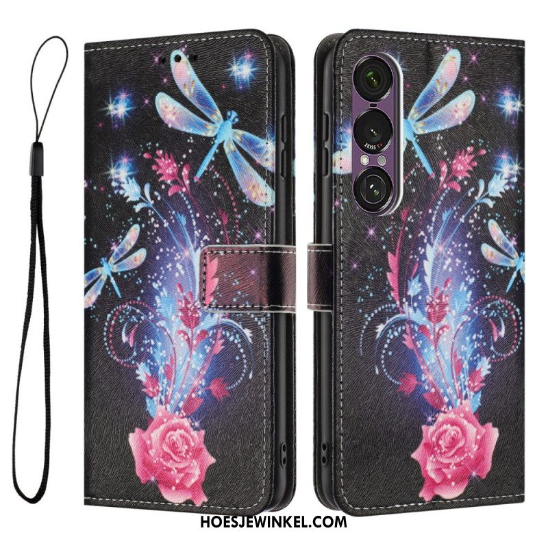 Flip Case Leren Sony Xperia 1 Vii Bloemenprint Met Bandje
