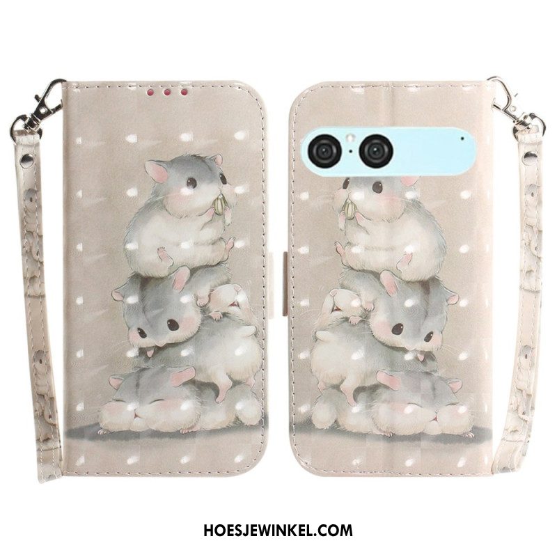 Flip Case Leren Sony Xperia 10 Vii Kunstleer Met Riempje