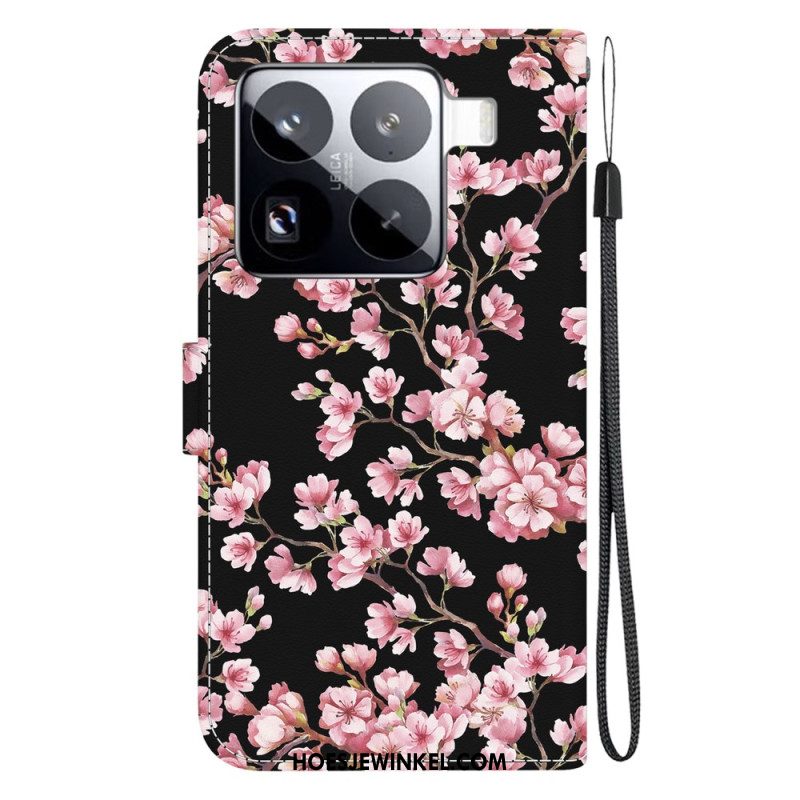 Folio-hoesje Xiaomi 15 Pro Witte Bloemen-bandje