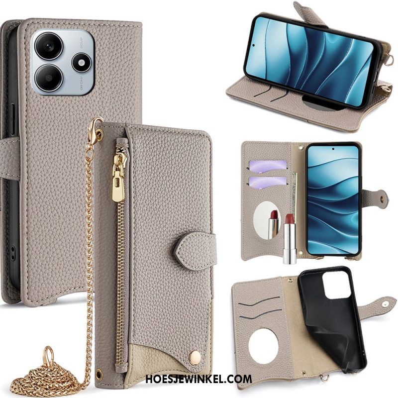 Leren Hoesje Voor Xiaomi Redmi Note 14 5g Met Standaard En Polsbandje