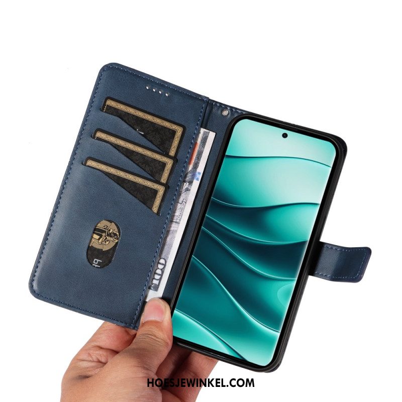 Leren Hoesje Voor Xiaomi Redmi Note 14 Pro Plus 5g Tweekleurige Gestreepte Strap-on