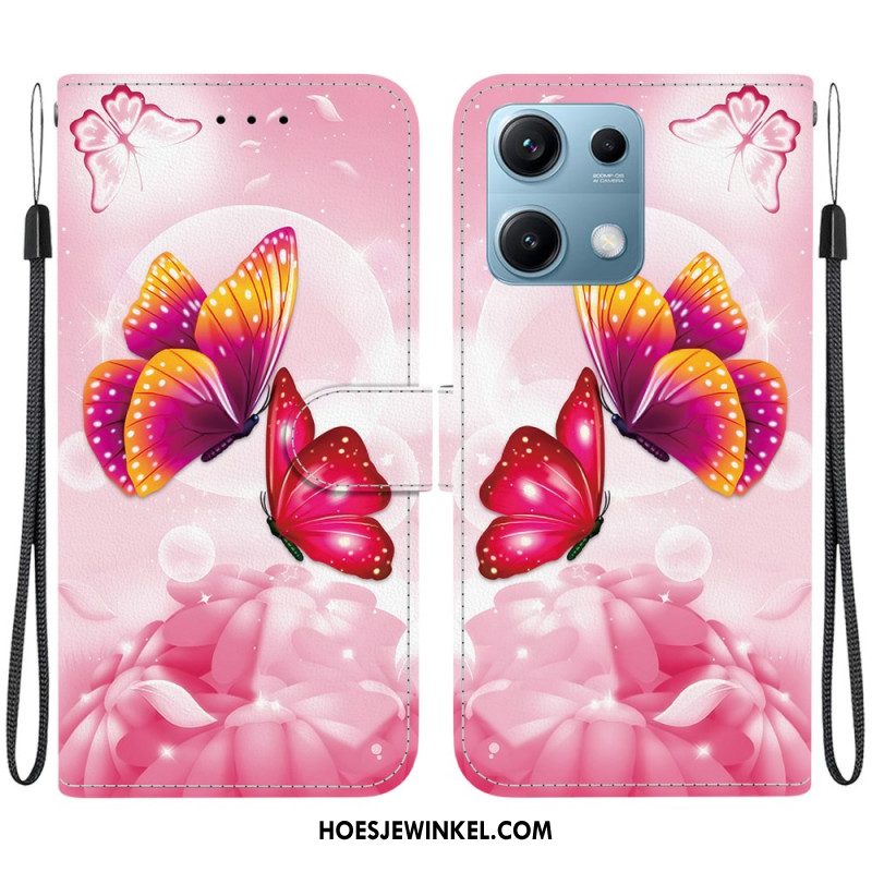 Leren Hoesje Voor Xiaomi Redmi Note 14s Roze Vlinders