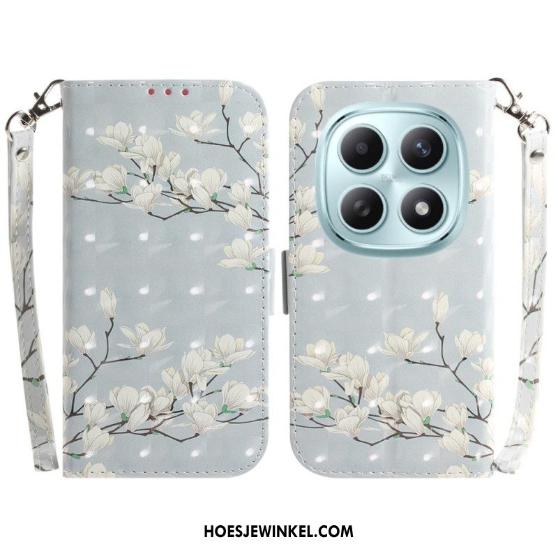 Leren Hoesje Voor Xiaomi Redmi Note 15 5g Witte Magnolia's Met Koord