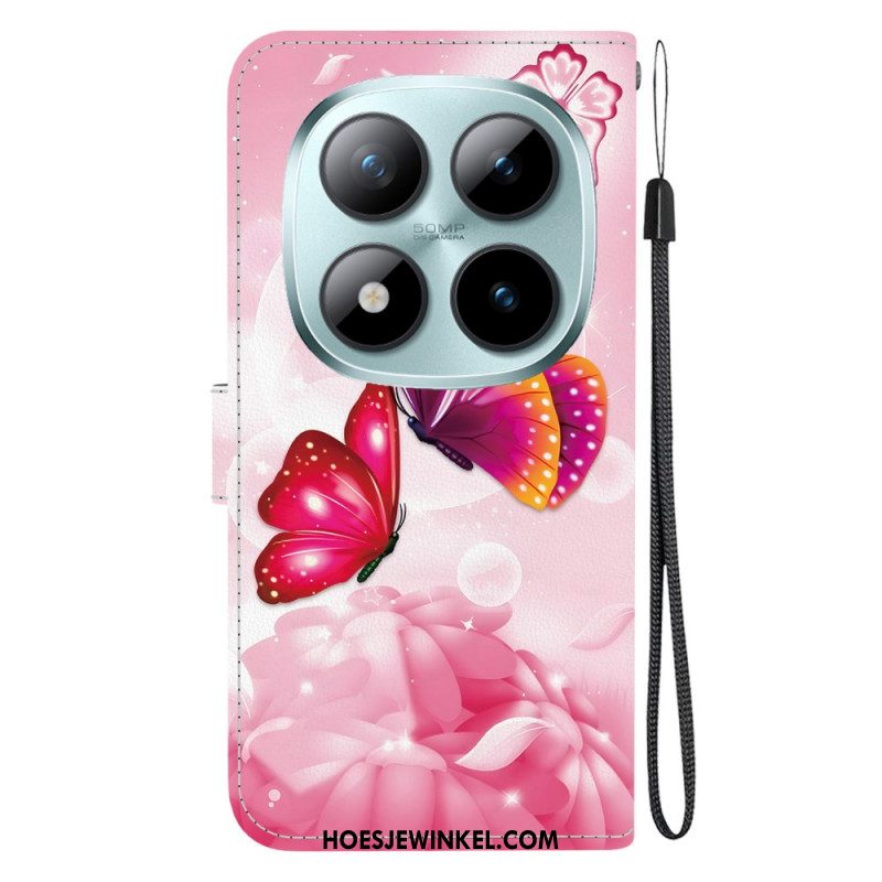 Leren Hoesje Voor Xiaomi Redmi Note 15 Pro 5g Roze Vlinders