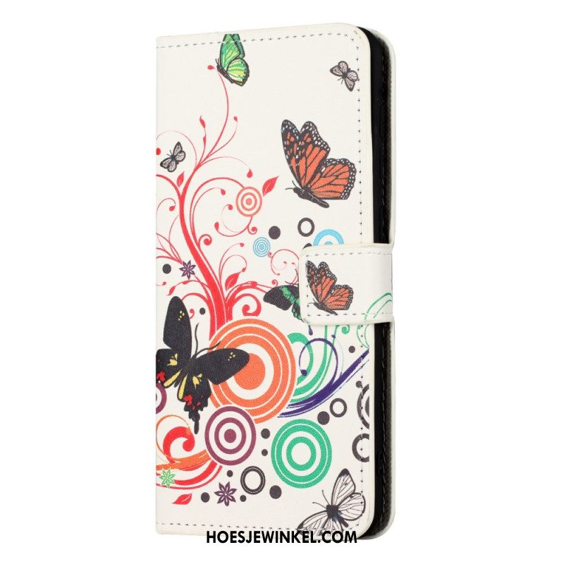 Leren Hoesje Voor Xiaomi Redmi Note 15 Pro 5g Vlinders Op Een Witte Achtergrond