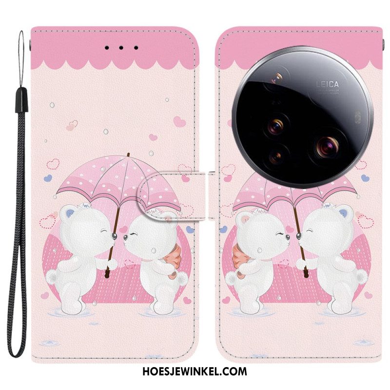 Leren Hoesje Voor Xiaomi 15 Ultra Zonnebloemprint Met Bandje