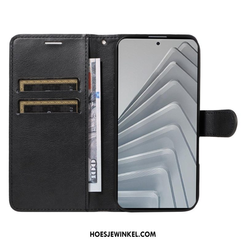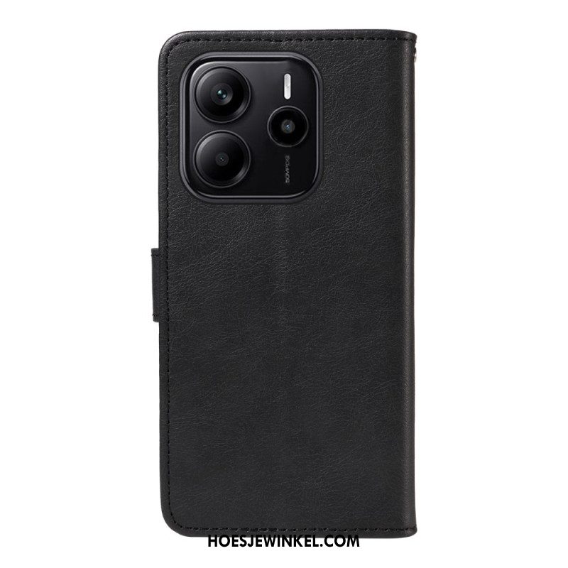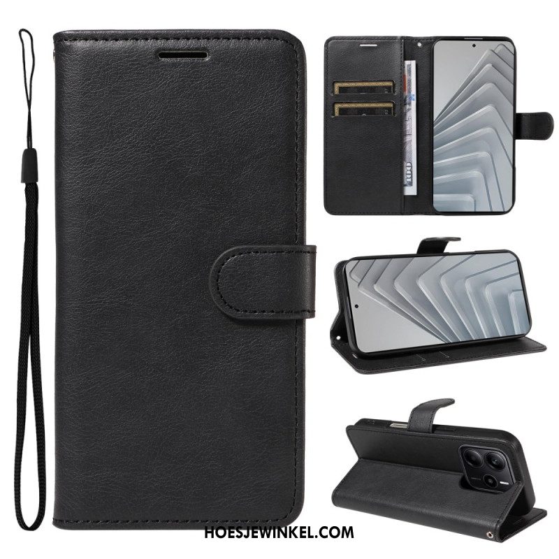 Leren Hoesje Xiaomi Redmi Note 14 4g Effen Kunstleer Met Riempje Bescherming Hoesje