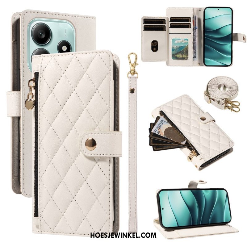 Leren Hoesje Xiaomi Redmi Note 14 5g Gewatteerd Met Bandjes Bescherming Hoesje