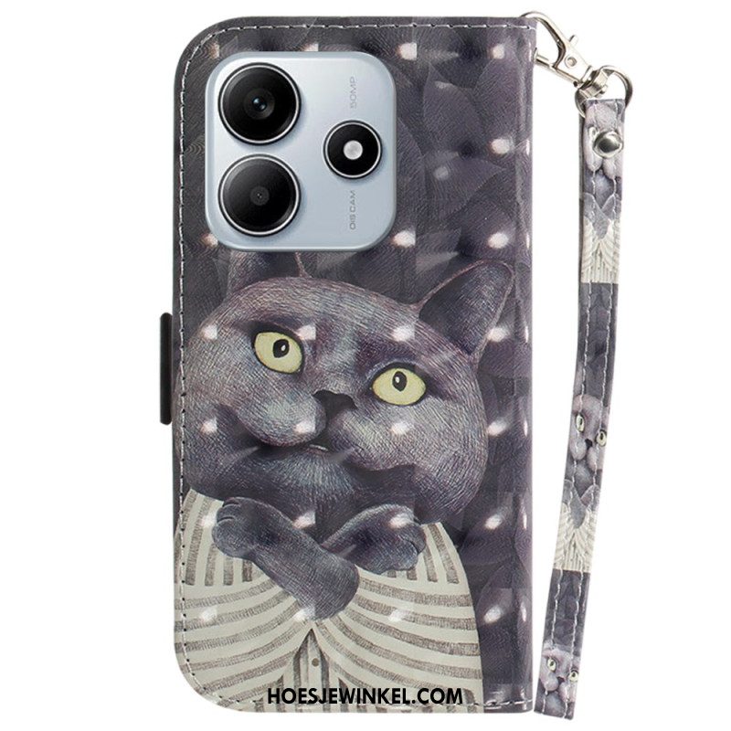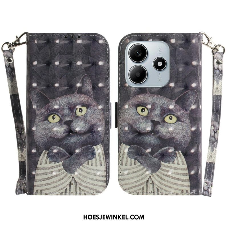Flip Case Leren Xiaomi Redmi Note 14 5g Kattenpatroon Met Bandje