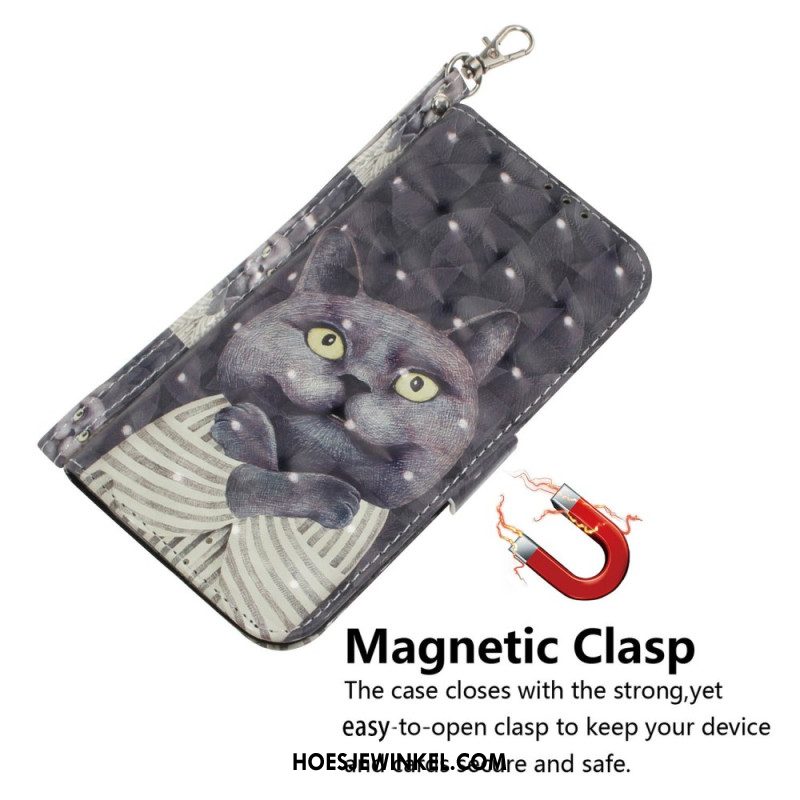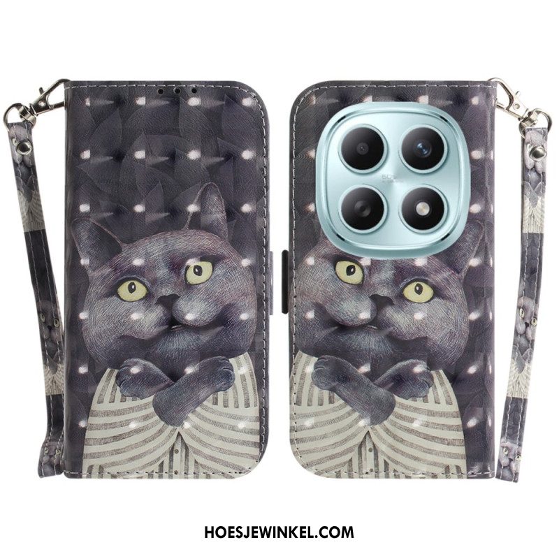 Leren Hoesje Xiaomi Redmi Note 15 5g Grijze Kat Met Koord Bescherming Hoesje