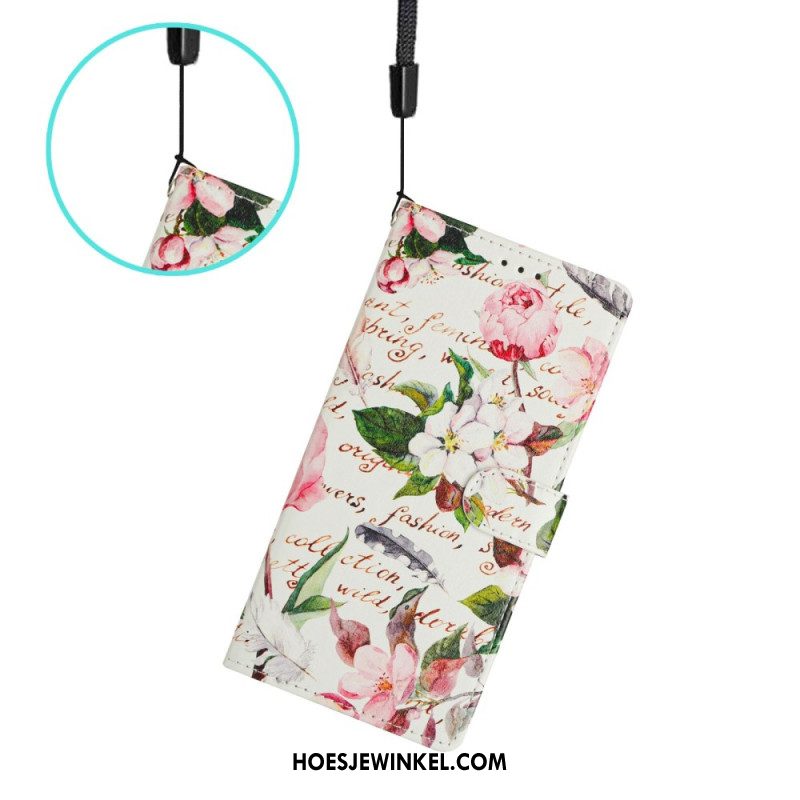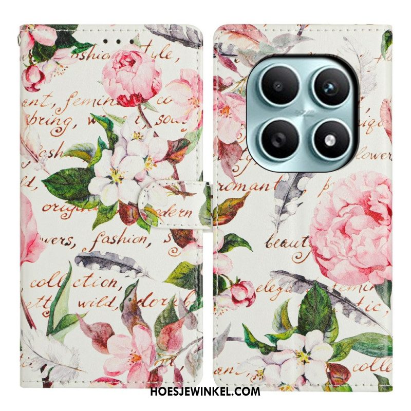Leren Hoesje Xiaomi Redmi Note 15 5g Bloemenkanten Bandje