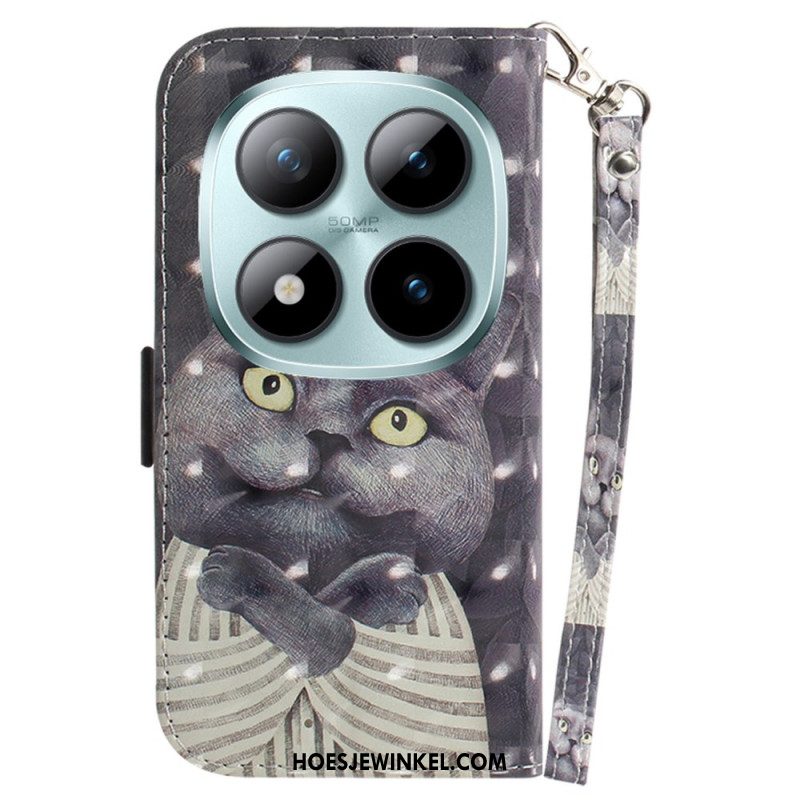 Leren Hoesje Xiaomi Redmi Note 15 Pro Plus 5g Grijze Kat Met Bandje Bescherming Hoesje