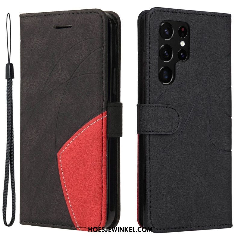 Leren Hoesje voor Samsung Galaxy S23 Ultra 5G Met Ketting Tweekleurige Riem