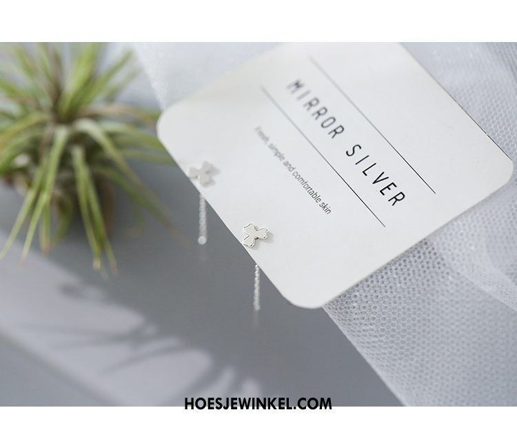 Oorbellen Dames Mini Schattig Zuiver, Oorbellen Bloemen Lucky Silber
