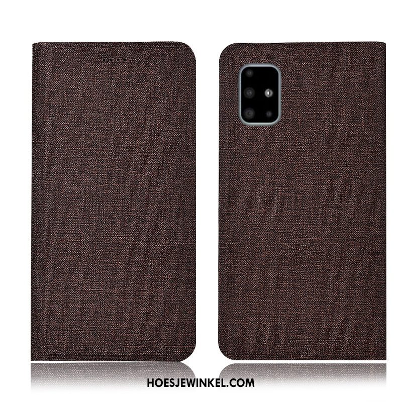 Samsung Galaxy A51 Hoesje Anti-fall Katoen En Linnen Ster, Samsung Galaxy A51 Hoesje Mobiele Telefoon Leren Etui Braun