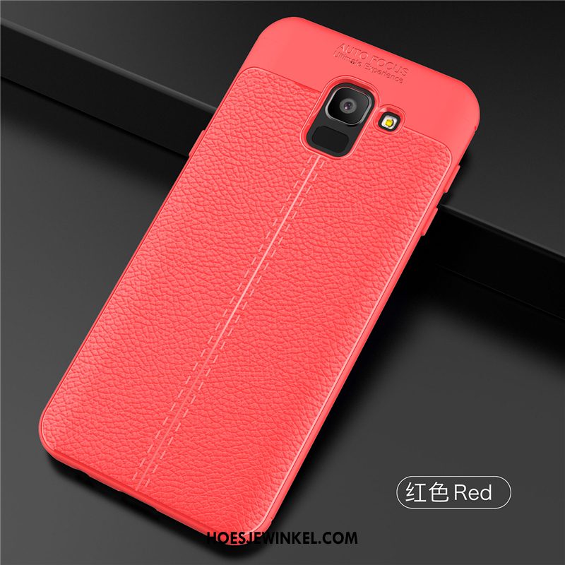 Samsung Galaxy J6 Hoesje Ster Bescherming Rood, Samsung Galaxy J6 Hoesje Leren Etui Hoes