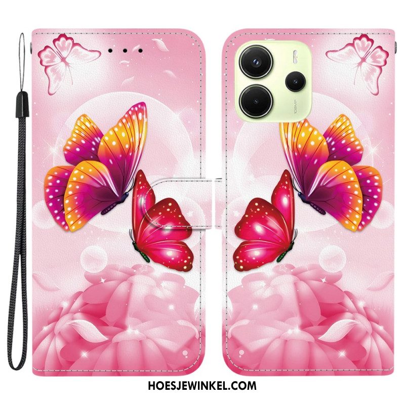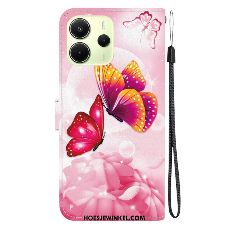 Leren Hoesje Xiaomi Redmi Note 14 4g Paarse En Witte Bloemen