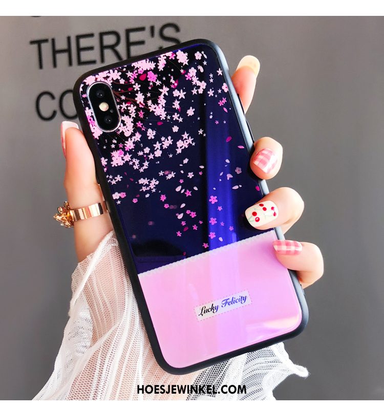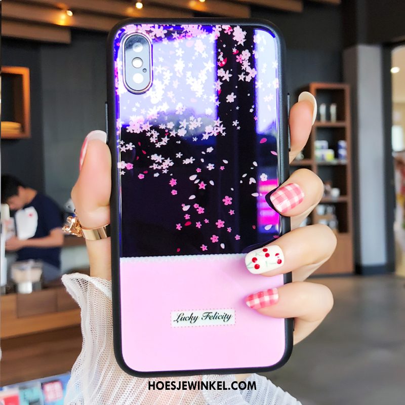 iPhone X Hoesje Roze Zwart Bloemen, iPhone X Hoesje Blauw Bescherming