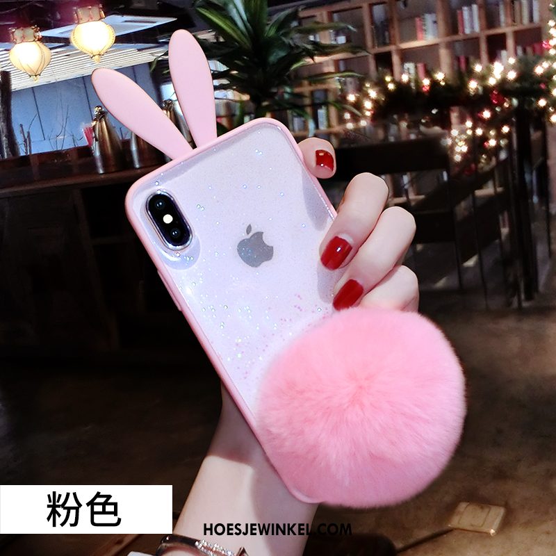 iPhone Xs Max Hoesje Pailletten Pompom Spotprent, iPhone Xs Max Hoesje Zwart Roze